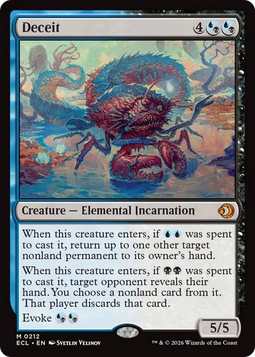 Deceit [Lorwyn Eclipsed]Set: Lorwyn Eclipsed Type: Creature — Elemental Incarnation Rarity: Mythic C...