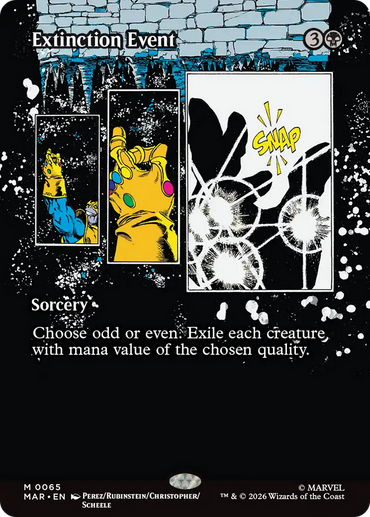 Extinction Event (Borderless) [Marvel Universe: Eternal-Legal]Set: Marvel Universe: Eternal-Legal Type: Sorcery Rarity: Mythic Cost: ...