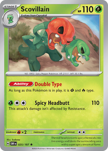 Scovillain (025/197) [Scarlet & Violet: Obsidian Flames]Set: Scarlet & Violet: Obsidian Flames Type: Grass Rarity: Rare Retreat ...