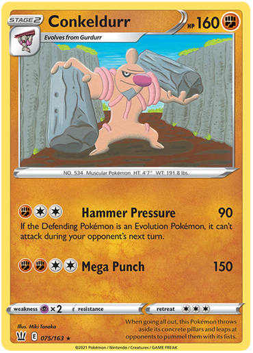 Conkeldurr (075/163) [Sword & Shield: Battle Styles]Set: Sword & Shield: Battle Styles Type: Fighting Rarity: Rare Retreat c...