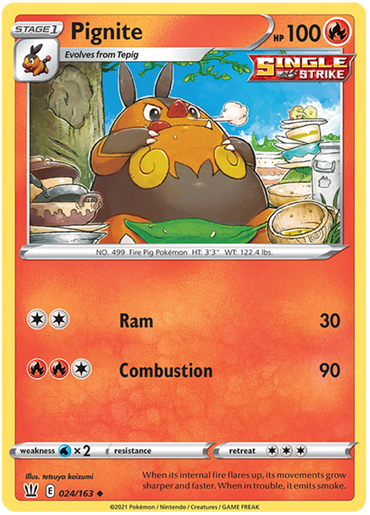 Pignite (024/163) [Sword & Shield: Battle Styles]Set: Sword & Shield: Battle Styles Type: Fire Rarity: Uncommon Retreat c...