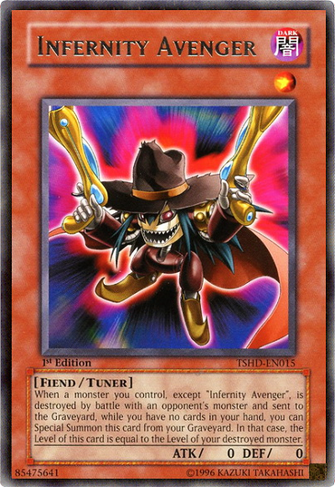 Infernity Avenger [TSHD-EN015] RareSet: The Shining Darkness Card type: Tuner Monster Rarity: Rare Attack: ...
